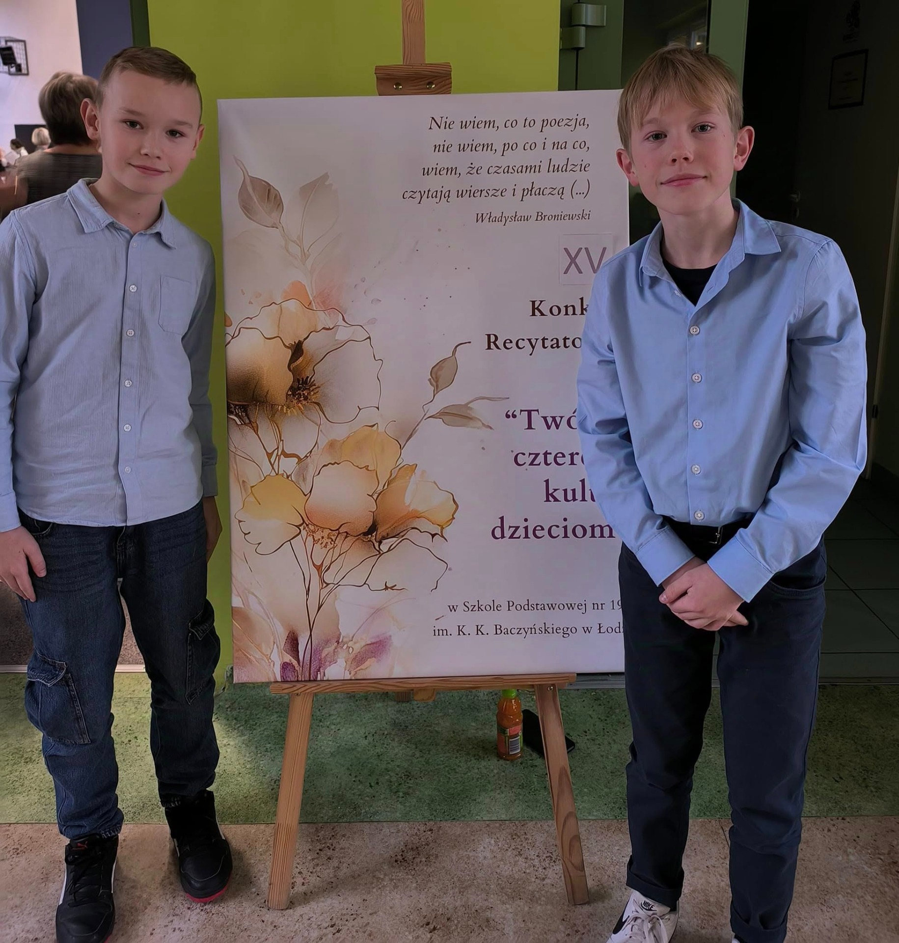 W XV Łódzkim Konkursie Recytatorskim "Twórcy Czterech Kultur Dzieciom" naszą szkołę reprezentowało dwóch piątoklasistów: Szymon Studziński i Mateusz Sobajda. Szymon zdobył największą liczbę punktów i tym samym zajął I miejsce. Ocenie podlegała między innymi poprawność artykulacyjna oraz ekspresja w interpretacji tekstu.